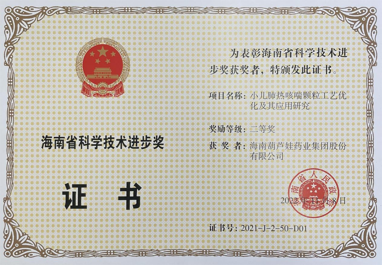 为此,小儿肺热咳喘颗粒的制备方法获得了第二十一届中国专利优秀奖(2019年),专利申请号:ZL201010134951,此次作为专利技术的应用,获得了2021年度海南省科学技术进步奖二等奖。在此之前,yd12399云顶集团牌小儿肺热咳喘颗粒还多次被授予“临床价值中成药品牌”、“中国连锁药店最具合作价值单品”,荣登“中国医药品牌榜”。
